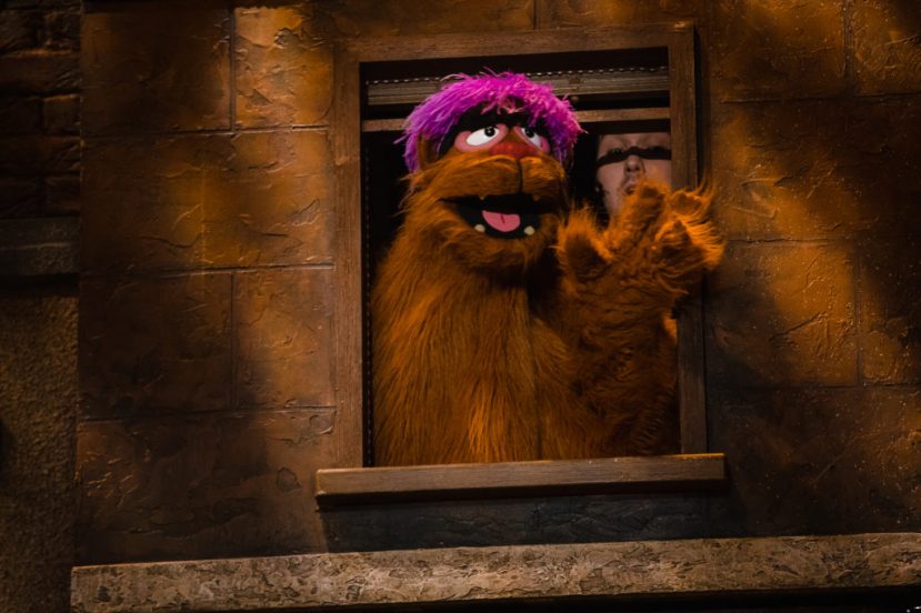 The stage contains a number of run down New York brownstones. These are the apartments of the various characters, who often appear in the windows. The walls of some of the apartments also open up to reveal the contents, but most of the action takes place in the front part of the stage. The puppeteers appear in plain sight, standing alongside their creations.