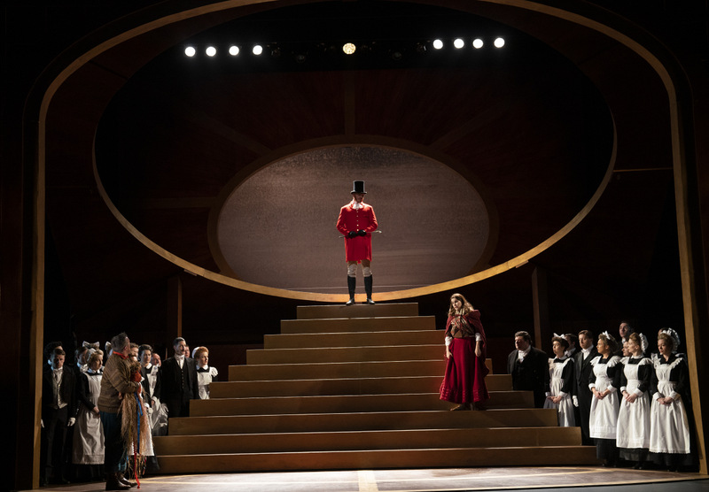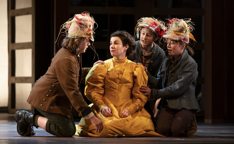 Staunton tackles the problems posed by the opera’s unwieldy libretto in her Irish reinterpretation by setting the action one hundred years after its opening night, at the end of the Victorian era. Although her choice is thought provoking and aims to confront some of the less palatable aspects of the text, such as those lines that reflect the misogyny and racial prejudice of Mozart’s time, it does not fully manage to bring all the strands in The Magic Flute into a coherent whole. Combining the imperial implications of this historical setting with the libretto’s fairy tale narrative was always going to be a tall order, and this perspective, which alternates historicism with folksy whimsy, works best at scene level. Nonetheless, if we judge this production on the basis of its set pieces, it is hard to find fault with Staunton’s reimagining and staging. Her set and lighting designer, Ciaran Bagnall, has worked well with the restrictions of a small stage, creating the illusion of space by utilising height and feigning depth, enabling Staunton’s dynamic direction of her cast, and echoing the layered liveliness of Mozart’s music. His lighting journeys through the piece with the inflections one would expect of an opera which centres on the battle between darkness and enlightenment; it is particularly impressive in the splendour of its final scene, warmly bathing its cast at the moment of reconciliation. On her part, Katie Davenport has created a wardrobe inspired by Victorian fashion and Irish folk, echoing Staunton’s reinterpretation.