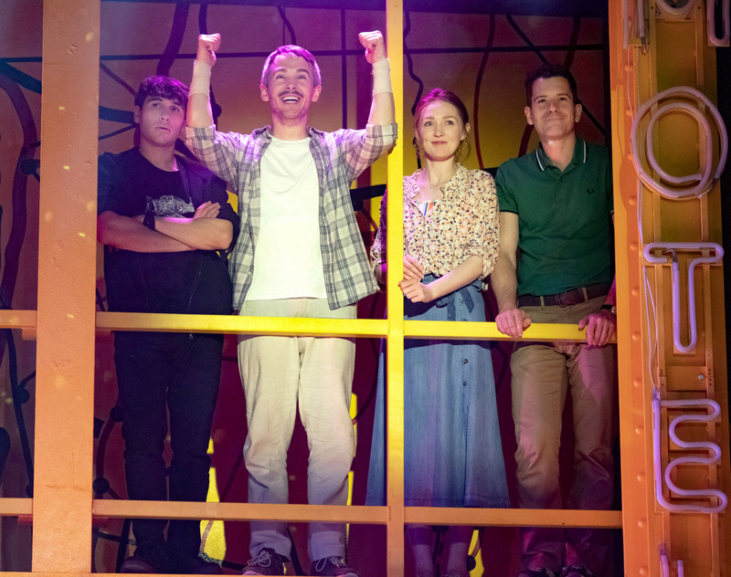 This is a touring production which has been running since March, with the Dublin dates the only ones in Ireland. Mark Moraghan has been playing Grandpa for most of the tour, but for the Dublin dates Bernard O’Shea has taken over the role in his theatrical acting debut! He does well with the relatively small part and has possibly the funniest song of the night with ‘The Happiest Guy in the Van’. Lucy O’Byrne is enjoyable in the role of Sheryl and she has a very impressive voice. She may be known to some readers from her time on The Voice Uk. The other main roles are taken by English musical regulars such as two-time Olivier-award nominee Paul Keating (Little Shop of Horrors, The Full Monty), Gabriel Vick (Avenue Q, Les Misérables, Eastenders), and Ian Carlyle (The Lion King, We Will Rock You).