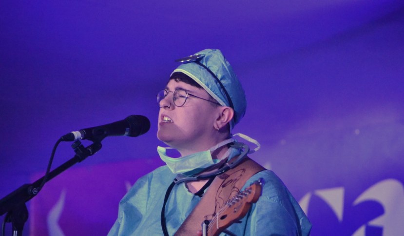 AE Mak is the stage name for Aoife McCann and she was the first act on stage. The next band up were the wonderful Pillow Queens, one of the most exciting new bands in Ireland today. They’re a four piece ‘girl band’ from Dublin (via Wicklow and Kildare) that play raw, guitar-based rock and pop music. Their lead singer, Sarah Corcoran, dealt with one rumour straight off ‘Did you hear that this gig was cancelled?’. Due to the amount of rain on the day, there was talk in the area that some of the gigs had fallen foul of the weather. Thankfully this was not one of them! The band all performed in Halloween costumes, with Sarah wearing a surgeon’s scrubs, another dressed as Dracula!