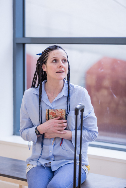 With only a couple of chairs and benches, Jacinta creates the world of Bernie as she meets the various inhabitants of the clinic. There’s Helen, the facilitator of the group therapy sessions she attends along with Alan who is addicted to cocaine, Leslie her room mate and Joyce, an upper class homemaker who is an alcoholic. There are also other family members and staff, and Jacinta creates all these characters, with different accents and traits.