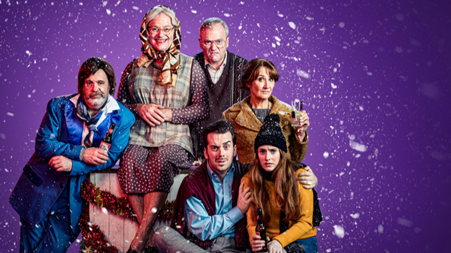 Ciara (Ruby Campbell) is bringing her posh hipster boyfriend Rudy (Gary Crossan) home for the holidays following their recent engagement. Two members of Mid-Ulster’s second-best ABBA tribute band (Alan McKee and Rod McVey) have lost their female bandmates while Catholic supplies salesperson Alison (Ali White) is worried that her husband won’t cope with the Christmas preparations if she isn’t there.
