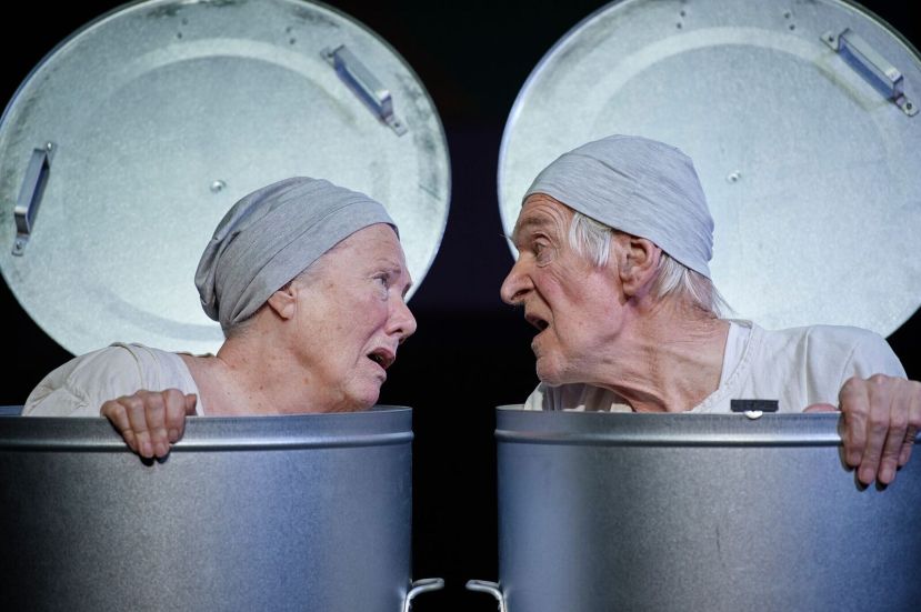 Where Waiting For Godot and Happy Days have frequent flashes of warmth, engagement and affection, Endgame is almost relentlessly nihilistic. Almost, but not quite. Des Keogh and Rosaleen Linehan as Nagg and Nell, lift the lid, literally, on the pervasive gloom and inject a vague glimmer of life and love. Limited, distorted and frustrated, yes, but there nonetheless – and utterly unforgettable. As Hamm’s ‘cursed progenitor’, Des Keogh’s timing and delivery are impeccable, getting full rein in his story of the English man and his suit. Linehan’s Nell reminds us of her magnificent Winnie in Happy Days, directed by Karel Reisz (who understood Beckett’s dark vision more than most, having lost both parents in Auschwitz). Her “ah, yesterday…”, repeated, is a masterclass in nuanced acting, facial expression and vocal colouring mining every level of compressed meaning, the tender glow of happy reminiscence, regret at the passing of time and the bleak prospect of there being any tomorrow.