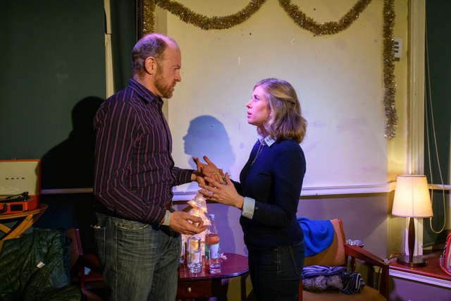 Matthew Ralli directs Stewart Roche’s A Christmas Visit, featuring Lesley Conroy, Neill Fleming and Jemima Nic Lochlainn. Just as we are caught up in what is happening (or rather, what we think is happening) and feel we know where everything is leading, the play takes a dramatic turn that catches us off guard. It is a clever, well worked piece.
