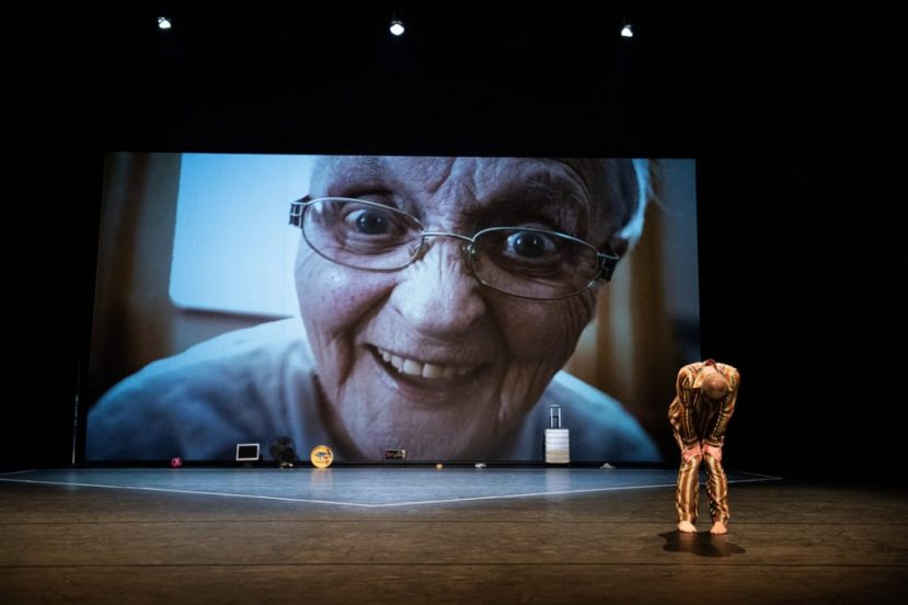 At the start of this new work by Philip Connaughton, we see a short video piece of Philip and his mother. She is quite elderly and suffers from some form of dementia. Philip wakes her in the morning and then gets her ready for the day ahead, washing and clothing her. These are intimate moments between the pair which he has chosen to share with the audience.