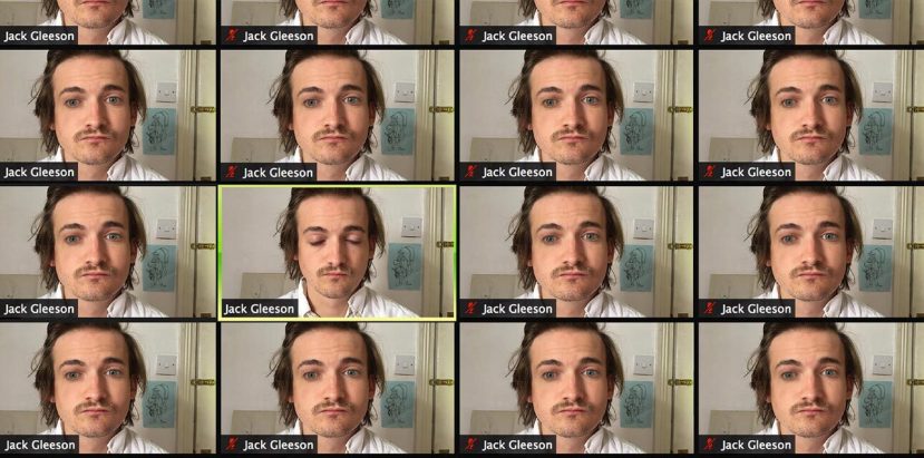 This is an online production which was broadcast live from the Project Arts Centre in Dublin. When you buy a ticket for the production, you are told that you need to upload some footage before you will be issued a link to view the production. The footage required is a five-second video of our face along with one of you laughing and another of you sleeping. These images are used in the performance as the theatre is filled with a number of screens, each containing the face of an audience member. The actor on stage can stare out into the audience and see our faces, but the audience is somewhere else entirely.