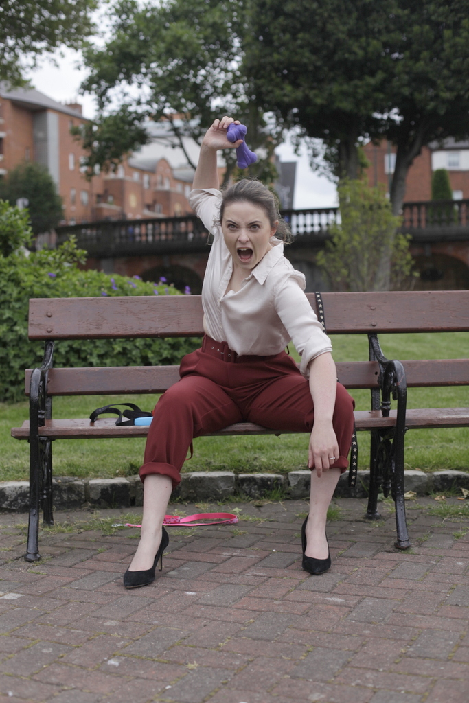 This is the third instalment of the Walkabout Theatre series, produced by Bewley’s Cafe Theatre. The location for this production is Stephen’s Green, in the area surrounding the statue of Henry Moore’s W.B Yeats. Stephen’s Green is a spot in which dog owners regularly give their pooches a walk. It is therefore a good location for the play which is all about Judy (Clodagh Mooney-Duggan) and her new enterprise – a dog walking service entitled “Absolute Pup”.