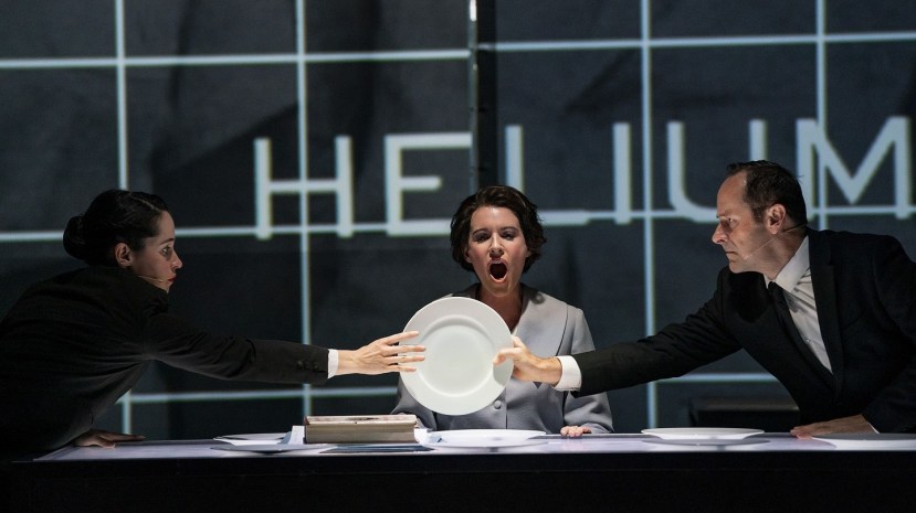Mezzo-soprano Naomi Louisa O’Connell’s portrayal of Rosemary is an outstanding achievement, more than deserving of OperaWire’s description of her as “a phenomenally versatile, intelligent actress.” Vocally secure throughout a musically demanding score, her concentration on the emotion of the part is unfaltering even as her singing is ‘interrupted’ and cross-cut by voice-over, staccato questions and discordant orchestration. Dancer/actor Stephanie Dufresne and actor Ronan Leahy combine several roles, from Rosemary’s siblings to staff at the mental institution where she was to spend most of her life. Aoife Spillane Hinks combines the role of assistant director with that of on-stage voice-over, conveying comments, ‘professional’ pronouncements and snippets from family recollections and interviews with the matriarchal Rose. Each of them is up to the standard of the staging of the opera which is outstanding in its clarity, imaginative reach and execution.