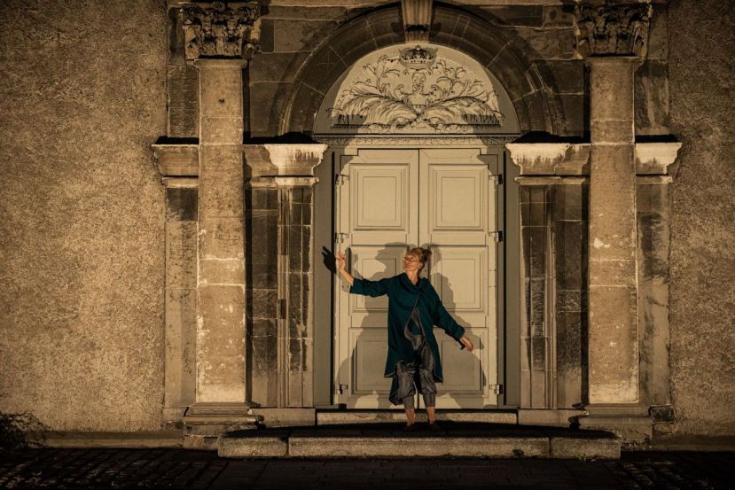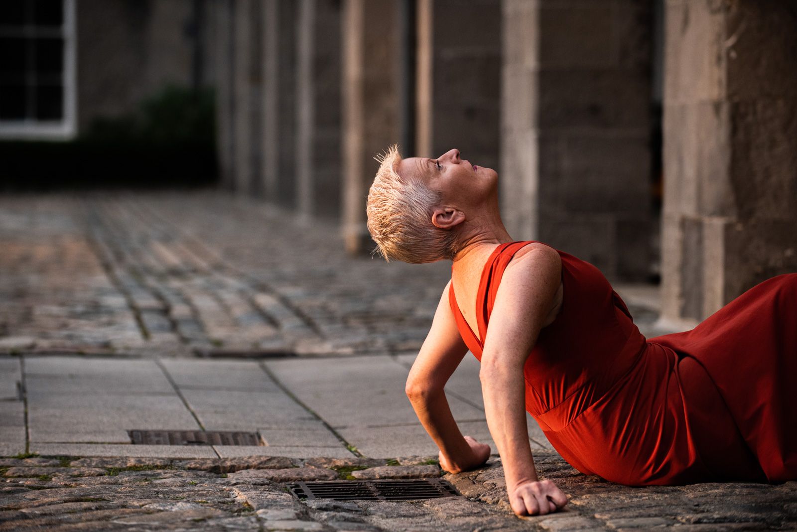 Their latest performance In Place was at four locations in and around the Irish Museum of Modern Art at the Royal Hospital, Kilmainham. The first section was at the stables, the second and third used the courtyard with the final section outside the Freud centre. The cast was also varied, with a male and female dancer for the first and second piece and a lone female for the final two sections. The audience was invited to walk between the various locations to see the dancers perform. The nighttime setting made the performance quite dramatic, as the dancers moved in front of strong lights, casting shadows onto the walls behind them.