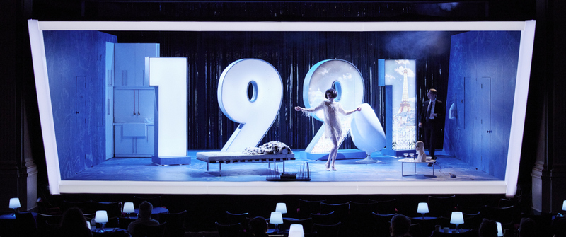 The production has an impressive sense of style, helped by Francis O’Connor’s set, with ten-foot-tall illuminated numbers making sure there was no doubt when the events were taking place! There was also a dance piece to introduce the production and a number of other musical happenings during the evening.