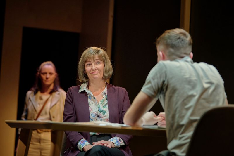 While the depiction of sexual violence is not shown on stage, it is still quite traumatic for the audience. We see the transformation in Jan from a friendly and warm person to a deeply damaged individual and Mullen’s performance is hugely impressive. The other actor that deserves praise is Scott Graham, who plays the student Damon. He succeeds in showing the human side of the young man who has committed this terrible deed. The topic of restorative justice is fascinating and this production succeeds in explaining the process and how it can help heal those involved.