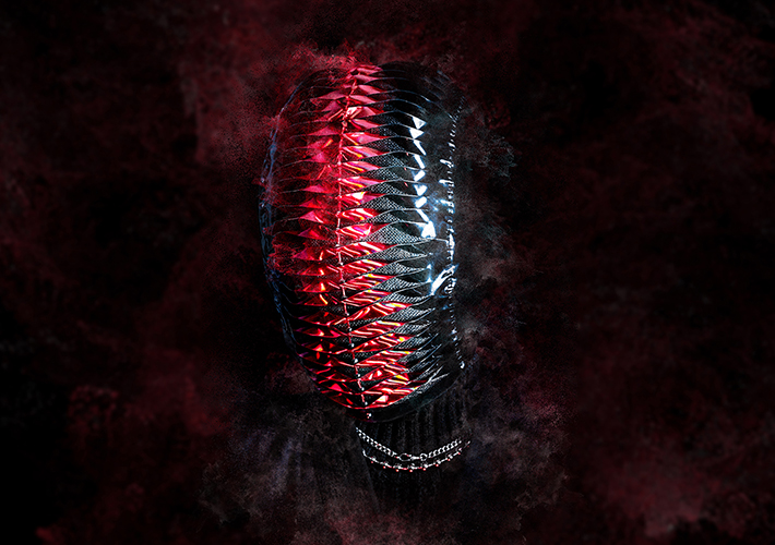 As you enter the small space of the Cube in the Project Arts Centre, the performer is already on stage. There are no seats in the space and a large cube hangs from the ceiling. The performer is on a raised platform at the centre of the space wearing black clothing and an intricate mask. After a few moments, the music starts and the two screens behind the performer come to life!