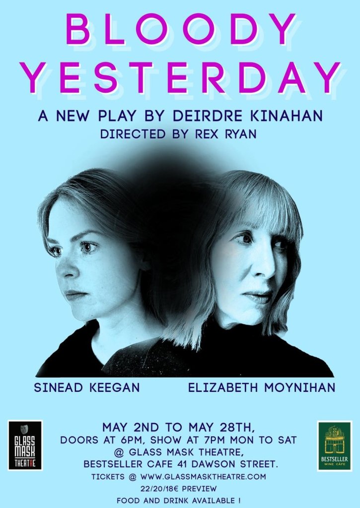 Moynihan and Keegan bring to life Kinahan’s intelligent script and the fractured world in which the mother and daughter live. It made for an engaging, thought-provoking fifty minutes of entertainment. The convivial atmosphere of the Bestseller Cafe added to the pleasure of the evening. With the early start time, Glass Mask Theatre may well have created a location where people can relax after work and be entertained. Bloody Yesterday is an ideal piece for this new location which is a most welcome addition to the cultural life of Dublin.