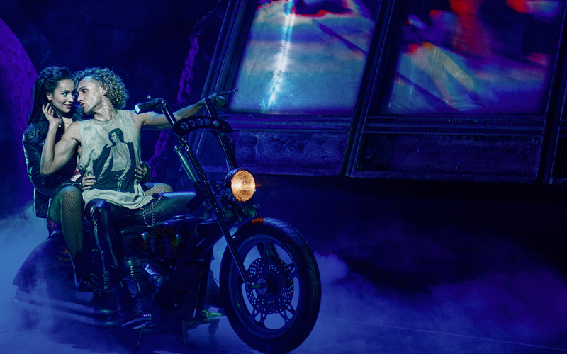 The album Bat Out of Hell (1977) was the debut release from singer Meatloaf and composer Jim Steinman. The album was originally developed by Steinman as a musical, Neverland, which was described as a futuristic version of Peter Pan. In a sense, it has come full circle as it arrives back on the stage. The original album has two sequels, Bat Out of Hell II: Back into Hell (1993) and Bat Out of Hell III: The Monster Is Loose (2006). The Musical has book, music and lyrics by Jim Steinman, and is directed by Jay Scheib. It was first staged at the Manchester Opera House in 2017. The story has elements of Peter Pan, although the tale of young love across a divide owes a debt to many other texts including Romeo and Juliet.