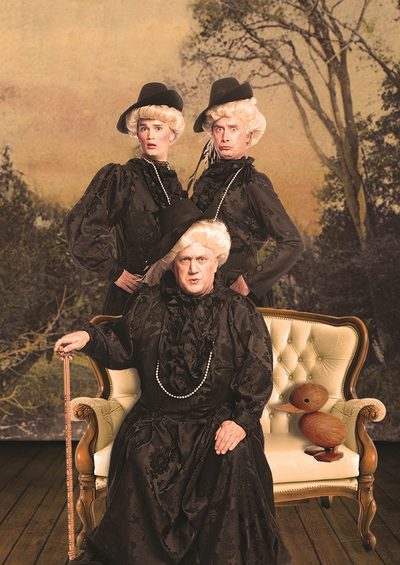 This is a hilarious production of Steven Dawson’s play by Australia’s award-winning Out Cast Theatre company. It is a fast and furious comedy wherein the three eponymous actors have to put on a production of Oscar Wilde’s famous play covering all the characters and in a time slot being repeatedly reduced in length by the theatre. Dressed, for no apparent reason, in Elizabethan doublets and hose, the three actors strike poses, argue amongst themselves about who is playing who, and rehearse in different styles (the Chekovian version was particularly funny), while trying to prepare for the opening.