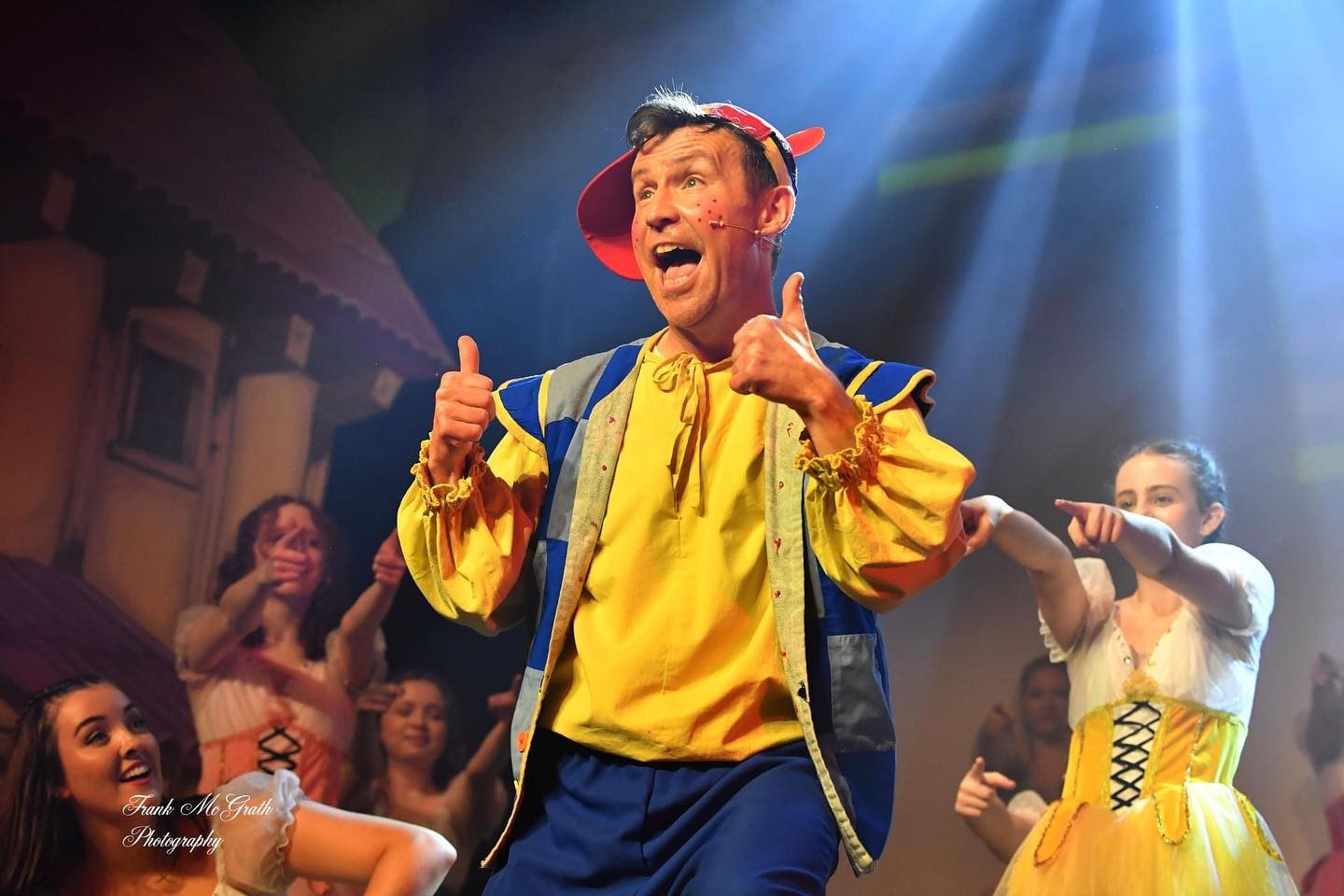 There is a brand new panto script riddled with topical jokes by writer/director Pat McElwaine. RTE shenanigans get a right roasting in this refreshingly new telling of a much-loved fairytale. There is fresh comedy galore. Billy’s words and music gags were great. Aided by colourful sets and a capacity singing and well costumed dancing chorus from Evolution Stage School, who really know their stuff. With precise and inventive choreography by Tracy Carthy, including a rarely seen tap number, they sing and dance their way through chart and musical hits (MD Paul Hennessy) and are involved all the way through.