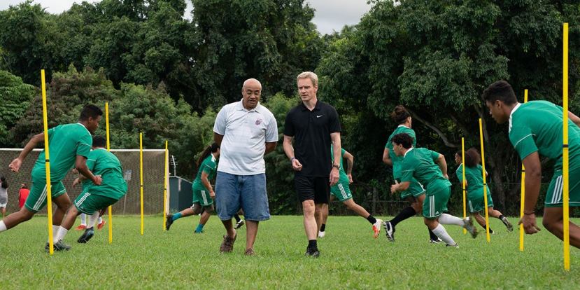 The members of the team are a motley crew but one team member Jaiyah Saelua (Kaimana) is trans and is the first trans player to compete in a World Cup. However, this epoch-making fact makes little impact on the storyline as the plot concentrates on Rongen and his problems which also include his ex-wife and her new husband. It is described as a sports comedy but the humour is somewhat lopsided as it concentrates on the overall inadequacies of the Samoans and condescension to the Samoans is barely held in check. Consequently, the comic aspects of the film, where the Samoans are for the most part portrayed as if they are a charming but simple people, are not for the most particularly funny.