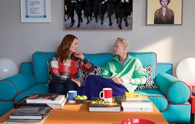 He has chosen the world of literary New York to be the backdrop and this is his first English language film. Martha (Tilda Swinton) is a retired war reporter who previously worked on a magazine where one of her colleagues was, now a successful novelist, Ingrid (Julianne Moore). By chance, Ingrid hears that Martha is in hospital with incurable cancer, and visits her there. Immediately the strength of their old friendship is reawakened. Although Martha is a mother she is estranged from her daughter Michele. Michele’s father had never been part of Michele’s life. Martha is now alone in the world. She does not want to die alone but she does want to die on her own terms. She has made a carefully worked-out plan. She has asked some of her female friends to be with her on her final journey but each has declined. Now she asks Ingrid who, after a great deal of hesitation, accepts the challenge. Matilda rents a splendid, uncompromisingly modern house in the beautiful countryside where they can live quietly as Matilda prepares herself for the final act, having informed Ingrid precisely what to expect. Ingrid will be in the room next door, hence the title.
