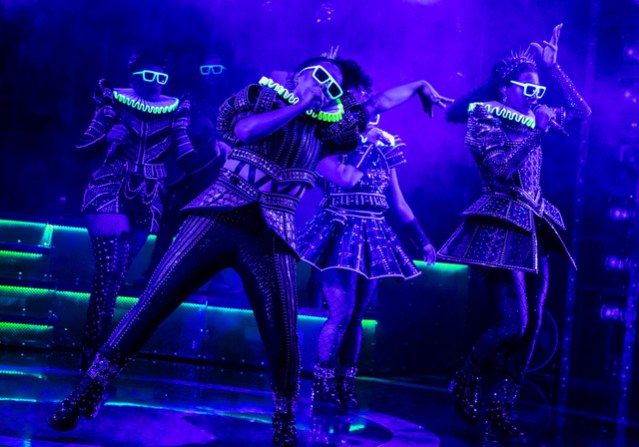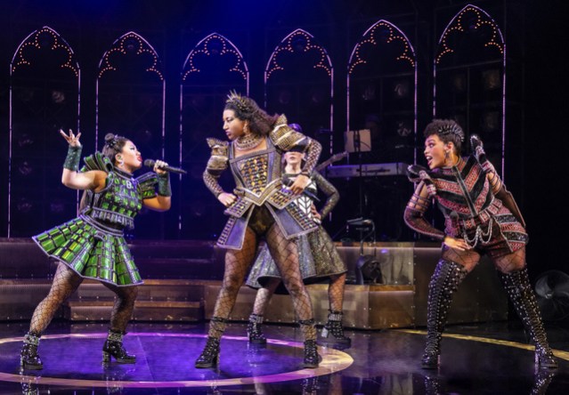 The story of each Queen is told through song in a variety of musical styles. There is a four-piece band at the back of the stage, with guitar, bass, keyboards and drums. While each singer has their own solo song, the rest of the six work as backing singers.