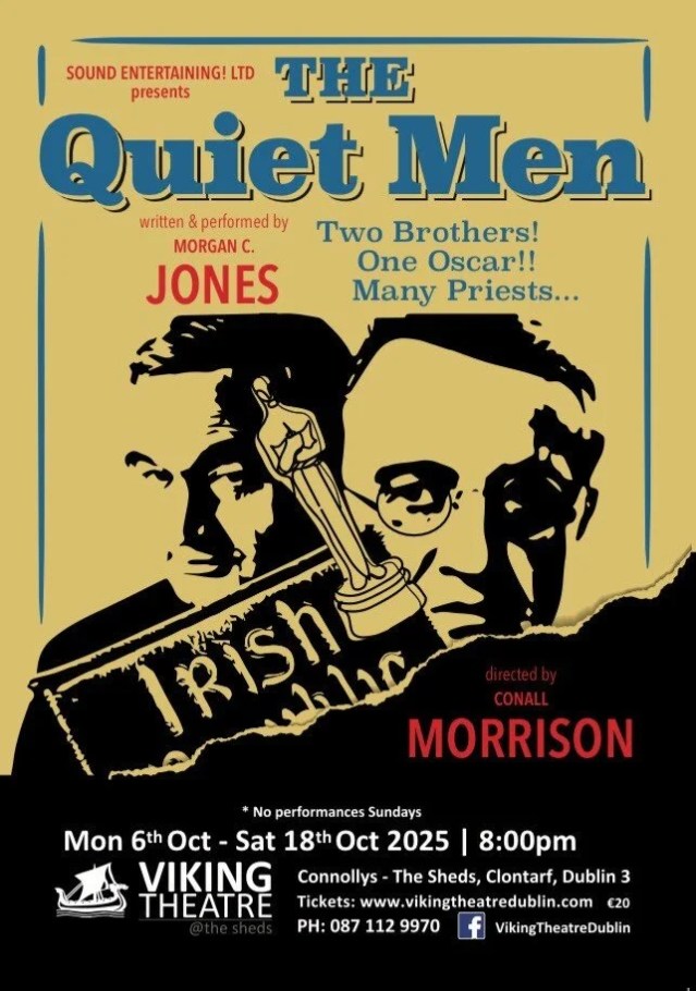 Morgan Jones is a great-nephew of the brothers Arthur Shields and his elder brother William, better known by his stage name Barry FitzGerald. This monologue is a tribute to their respective acting careers in Ireland with the Abbey, but primarily in the United States. It looks at their successes and the challenges they faced. Jones starts with Barry being in serious trouble in Los Angeles during the First World War, while William is deported to Frongoch for his part in the 1916 Rising.