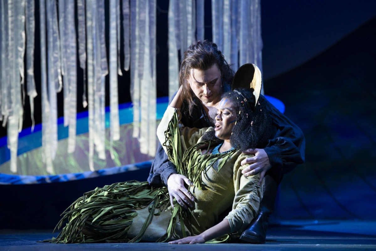 The only person to drink from the fountain and to survive, because he truly thirsted for its knowledge, is the reclusive oracle Talim Hadjo, impressively sung by Meilir Jones, who mastered the deep bass register in style. It was no mean musical feat. Jones was well matched on the tribal island by its leader, the warrior, Wapanacki, in an impactful performance by Kamohelo Tsotetsi.